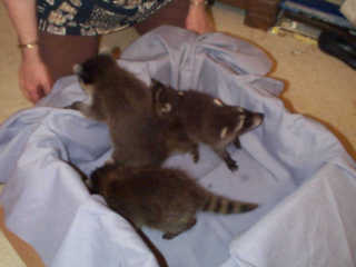 Though they look cute and cuddly, Wild creatures should NEVER be considered as prospective Pets..... All of the babies on this page will be released back into the Wild when they reach a point where they can survive on their own.... Though this is not always easy emotionally, it IS the ONLY way to care for Wild Creatures...... Well, the 1998 season has come to a close. Though I didn't keep a blow by blow record with updates, we had a very busy and, overall, successful season. Our successes looked like this.... Released back into the wild, over 35 Raccoons, over 45 Gray Squirrels, 12 Flying Squirrels, and over 20 Opossums. Oh yes, many of them still come to visit and we get to watch them play and frolic in the trees and woods that surround our home...... Now that's pure pleasure at it's best........ ![]() Dixie and I would like to express our appreciation to those kind people who found these orphans and took the time to find us. Because of your efforts, these babies of Nature will have a fighting chance to survive. If you find an orphaned or injured wild creature, and you have enough love in your heart to help, please 1st be very careful not to injure the animal further, protect yourself from scratches and bites, seek out a WildLife Rehabilitators, Veterinarian, The Department Of Natural Resources, or if all else fails, call the State Wildlife Department. WildLife Rehabilitators generally specialize in one or two types of creatures. Please follow this link to my list of WildLife Contacts that can help you. ---- Our Other Pages ----