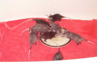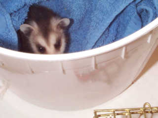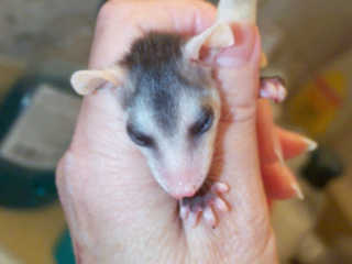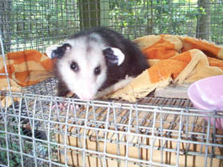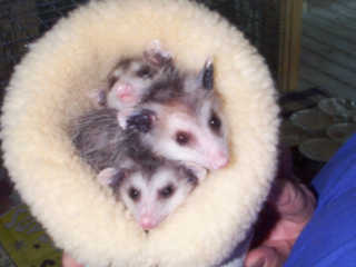 ![]() | Arrived 13 April - The three dark Opossum in this food fight, were orphaned when their mother was attacked by a dog.... Unfortunately, we don't know the fate of the mother or the remaining babies since she escaped from the dog and ran into the woods.. |