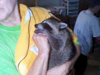 ![]() | Ok, How does this thing work?? - Meeko, was raised from a tiny baby by Beth and Dennis who live in Charleston. He's very close to release age in these pictures and is now in the process of migrating back to the wild... He's a beautiful dark brown Raccoon and is doing great. 06/19/99 |