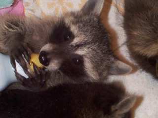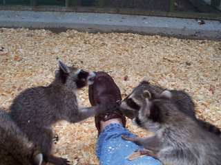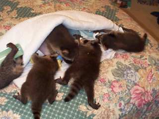 ![]() | We saved the foot.- Fortunately, we were able to save the foot of this year old male. The cut went to the bone in places, but the amazing healing power of the Raccoon will soon erase most of this wound. He'll probably never get 100% of the original movement of the foot again, but at least it'll be there to help him survive when we release him back into the wild. Oct,00 |