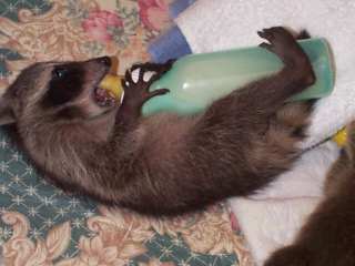 ![]() | Don't even think about taking this bottle ! - It's only a short week, or two, till they learn to hold on to the bottle all alone. With their, delicate, hand like front feet and strong back legs, it a grip that any man would be proud to have. June,00 |