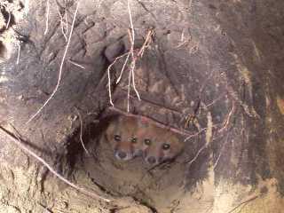 Nobody will ever find us in this hideout! - Results of tests run on the mother, revealed that she carried the Rabies virus. This news sent out a panic alert to DEHEC who immediately called for the death of the four kits. Dixie's hours of discussions and pleas for a chance to save them, won a temporary stay of execution, however, it came with conditions. Since Rabies is Fatal, if any human that had come in contact with these kits had been bitten or had open wounds, then the immediate euthanasation and testing would be ordered. May,01 |