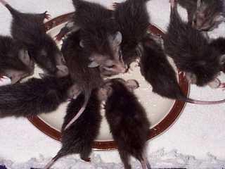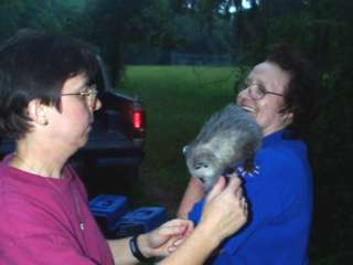 ![]() | Hey, get off my foot !! - Let's see, one, two, three, four, and so on till you get to 47. Opossums are busy this season and these little ones are being weaned. They're loving every minute of it too. Of course, clean up is a tad more difficult. May, 2001 |