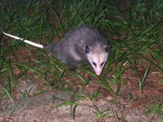 See ya around! - One last look back, and he's off on his new life's trail. He'll never see headlights of an oncoming car like the one that killed his mother. We wish him, and all the others, a happy opossum life. We gave 'em the new start, the rest is up to them....... 11 Aug,01 |
