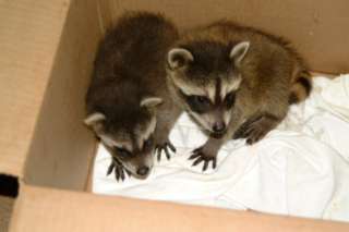 Hmmm, you think they forgot us ?? - These two were evicted from an attic. As man continues to destroy their habitat, wildlife continues to try to survive any way they can. An improperly constructed house makes easy access for a mother raccoon to make a dry litter den in an attic or chimney. If you build near wooded areas, please include chimney caps and heavy wire in attic vents to keep animals out of your home. 24 April, 2002 |