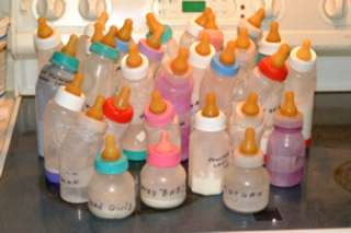 Feeding time in the nursery! - Well, baby season is in full gear and with all the construction and tree cutting going on, we are loaded this year. Bottle filled with formula are prepared prior to each feeding. We're now spending over four hours at each feeding and the season has just started. 16 May, 2002 |