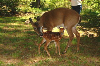 Gone, but never forgotten! - Never quite sure if she was a deer or a dog, Pebbles won the hearts of the whole neighborhood and even strangers who visited. Her daily visits kept everyone filled with joy and the pleasure of experiencing nature at it's best. It's with a heavy heart and a tear in my eye that I must now say that Pebbles is no longer with us. We last saw her in late January, 2009. A neighbor believes that she was hit by a truck while crossing a nearby highway. I think she had a happy life and she leaves behind a family of five beautiful children, all of which still visit us daily. Though they will not let us touch them, they keep Pebbles in out memories. No other deer that we have raised before nor since, ever loved people as much as Pebbles. We consider ourselves blessed to have had such an experience.
