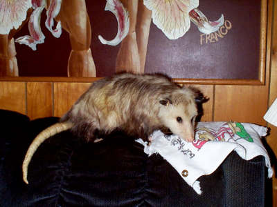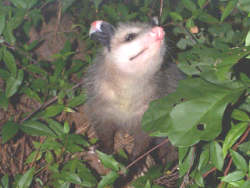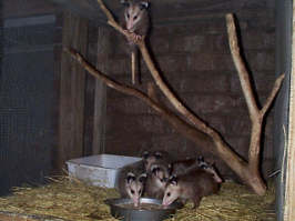 Well, this one even shocked Dixie and I...... A few weeks back, Punkin started acting very strange... She chased Dixie around and would bite her on the feet every chance she got... She started going out at night and coming in each morning..... The strange behavior subsided after a few days, and all seemed well... On the 12th of July,,, Punkin's 2nd litter of the season was born.... You may have guessed and we now understand the strange behaviour.....Yep, since the 1st litter no longer stayed in the pouch, Punkin decided it was time to refill it..... Dixie and I have taken over the 1st litter... Though they are probably big enough to make it on their own, we will keep them a few more weeks to be sure.... We moved them outside so they'd have more running room and wouldn't keep waking us up all hours of the night...