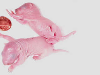 | 3 weeks - the baby's lower front teeth begin emerging. Hair is now slick, smooth, and shiny. still no hair on legs and belly. |  |