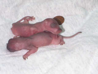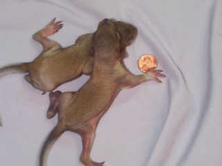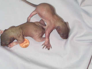 | 1 to 5 days - tiny, the size of a woman's thumb - knuckle to tip - and totally pink; no hair at all. |  |