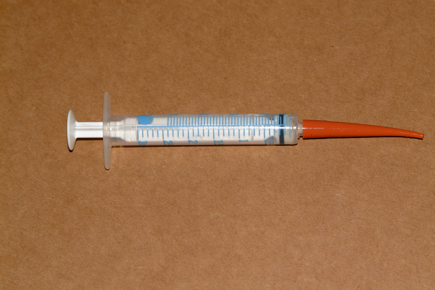 Into the syringe put 1 cc of the formula - add 2 cc's of plain water.